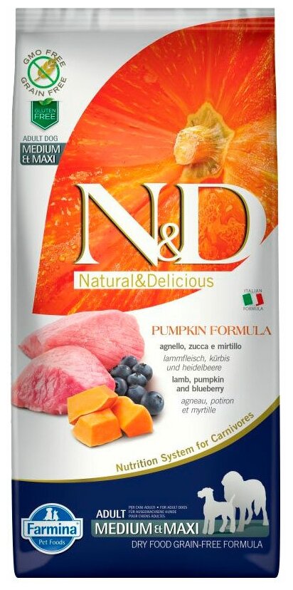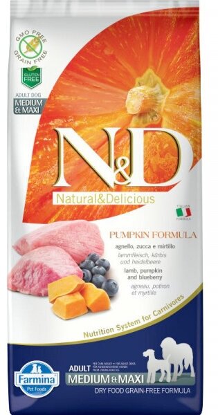 FARMINA DOG N&D GRAIN FREE PUMPKIN ADULT MEDIUM & MAXI LAMB & BLUEBERRY беззерновой для взрослых собак средних и крупных пород с ягненком, черникой и тыквой (12 кг)