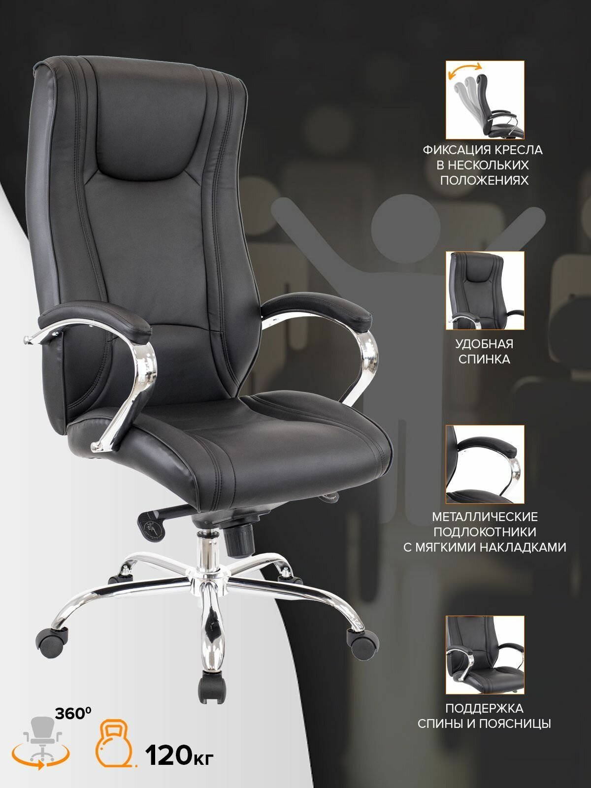 Компьютерное кресло офисное рабочее для руководителя Everprof King M Кожа Черный