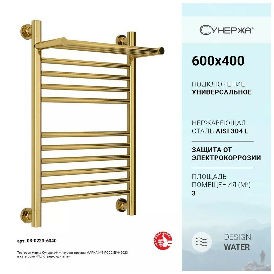 Водяной полотенцесушитель Сунержа Богема с полкой+ 600х400 (золото)