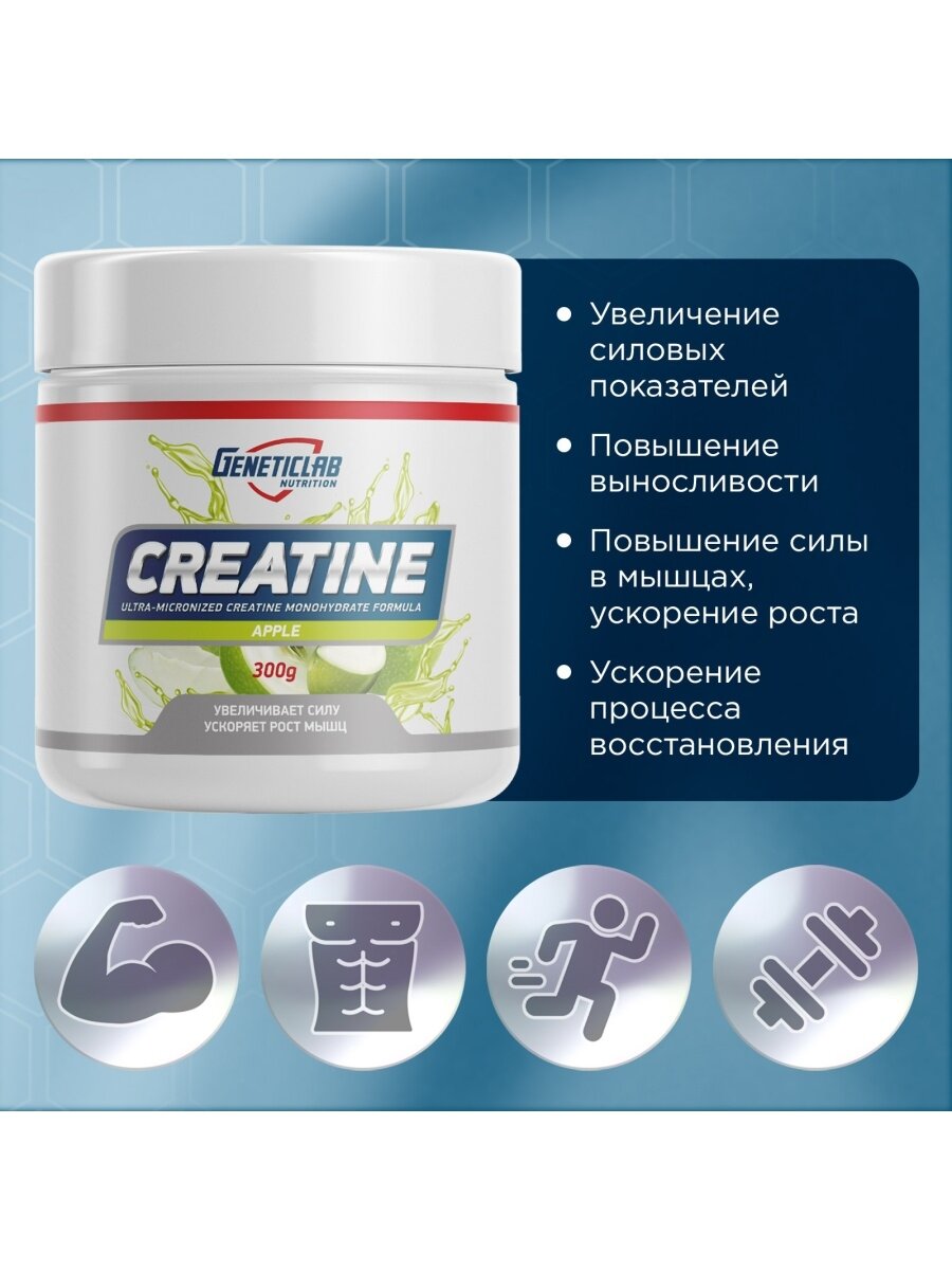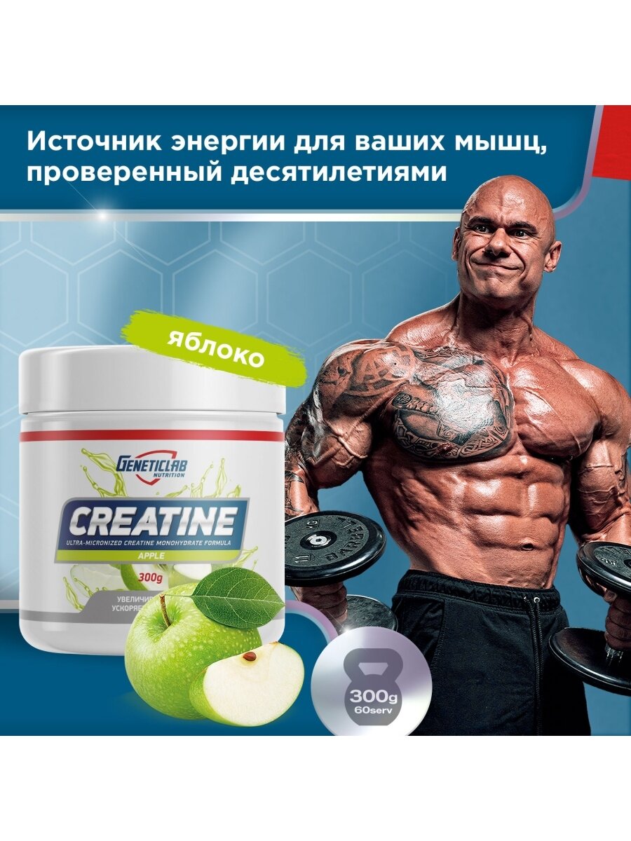 Лучшие цены. Creatine от Geneticlab – спортивное питание, которое обеспечивает наращивание мышечной массы, повышает выносливость и дает дополнительную силу для тренировок. Этот продукт позволяет быстрее достичь желаемого результата без вреда для здоровья. С ним тренировки будут приносить больше эффекта. Продукт содержит креатин моногидрат – это чистый (концентрированный) креатин, который получен искусственным путем. Он дает силу и энергию до конца тренировки. Магазины в вашем городе.