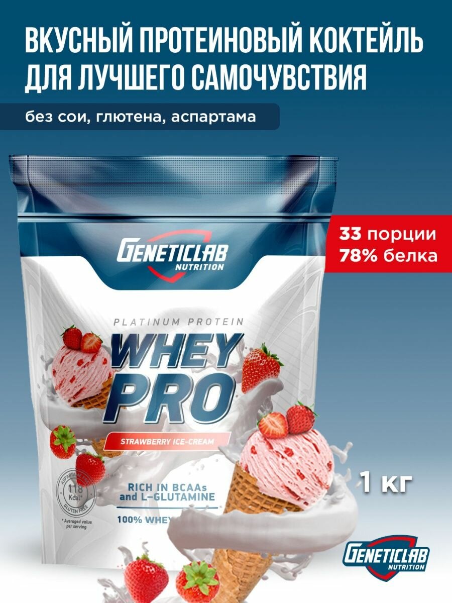 Сывороточный протеин Geneticlab "Whey Pro", клубника, 1 кг