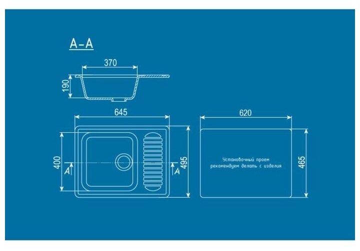 Мойка для кухни врезная U-202 640*490мм прямоугольная (331) белый