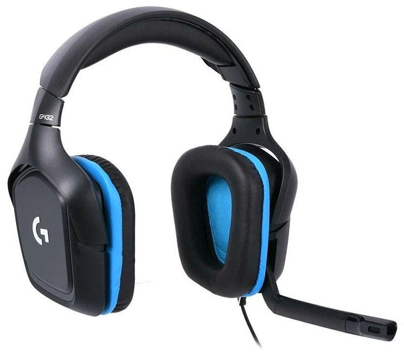 Гарнитура Logitech G432 Leatherette, для ПК и игровых консолей, накладные, черный/синий