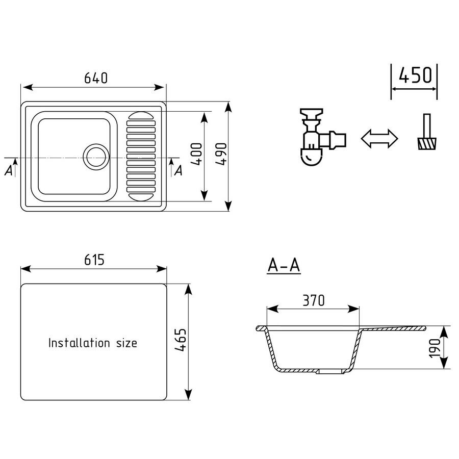 Мойка Ulgran, мрамор, U-202-310, (640*490*190 мм), серый, сифон и сливная арматура в модуль 450