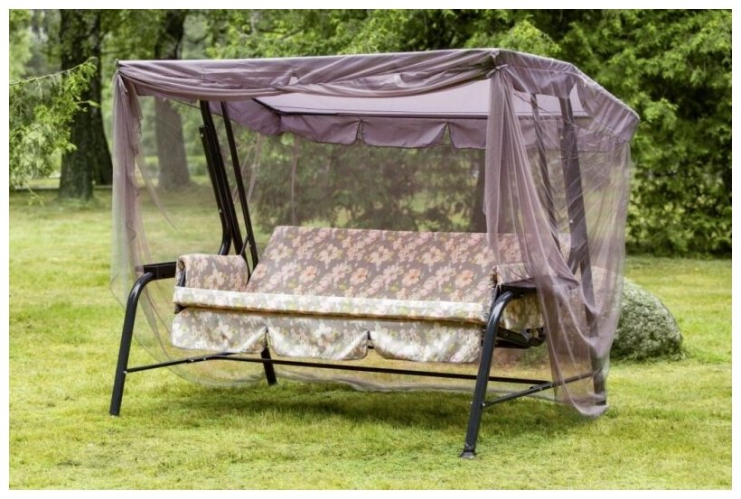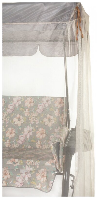 Садовые качели 3-местные с москитной сеткой Olsa Сиена серый/цветы