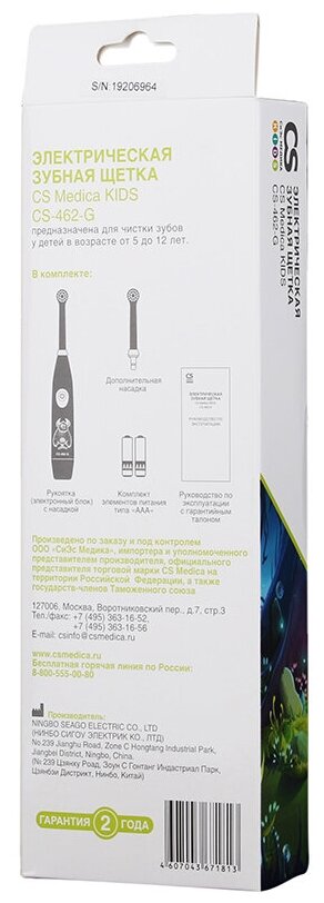 Лучшие цены. Электрическая зубная щетка CS Medica Kids CS-462-G разработана специально для детей в возрасте от 5 до 12 лет. Прибор имеет яркий привлекательный внешний вид, уменьшенный размер головки и мягкие щетинки для бережной чистки зубов. Высокое количество возвратно-вращательных движений зубной щетки (18 000 движений в минуту) обеспечивает эффективную очистку зубов со всех сторон, включая труднодоступные места (бороздки, ямки, контактные поверхности зубов) и гарантирует отличный гигиенический эффект. Магазины в вашем городе.