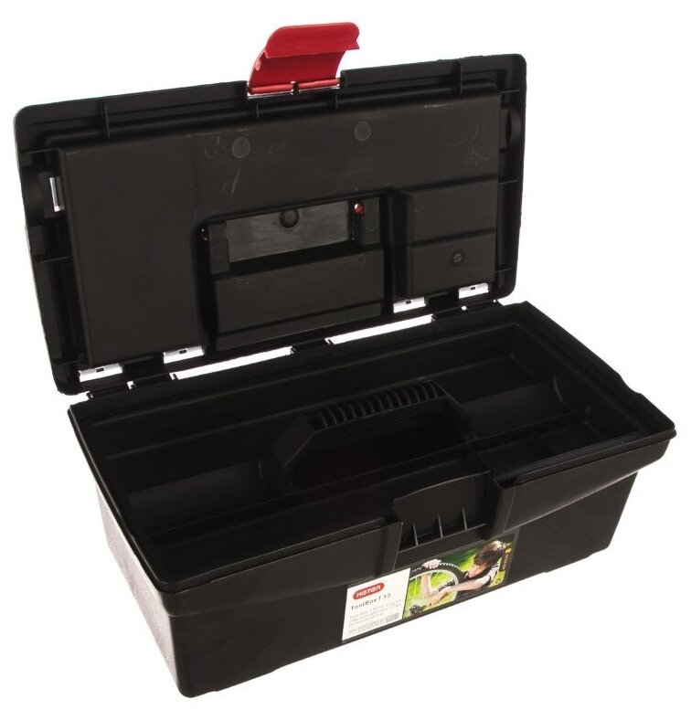Лучшие цены. Ящик для инструментов Keter Toolbox 13 изготовлен из полипропилена и отличается небольшим весом. Имеет объем 5.3 л, поэтому подходит для хранения швейных принадлежностей и небольших домашних инструментов. Изделие удобно переносить благодаря широкой ручке. Она опускается вниз для удобства хранения. Плотная защелка препятствует случайному открыванию ящика. На крышке расположен органайзер для мелочей. Магазины в вашем городе.