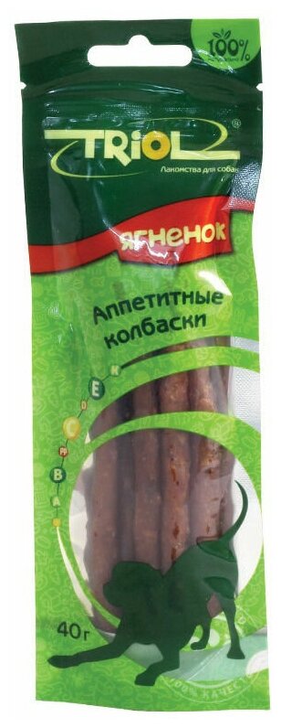 Корм для собак Лакомство для собак Triol аппетитные колбаски из ягненка, 40г, 1шт