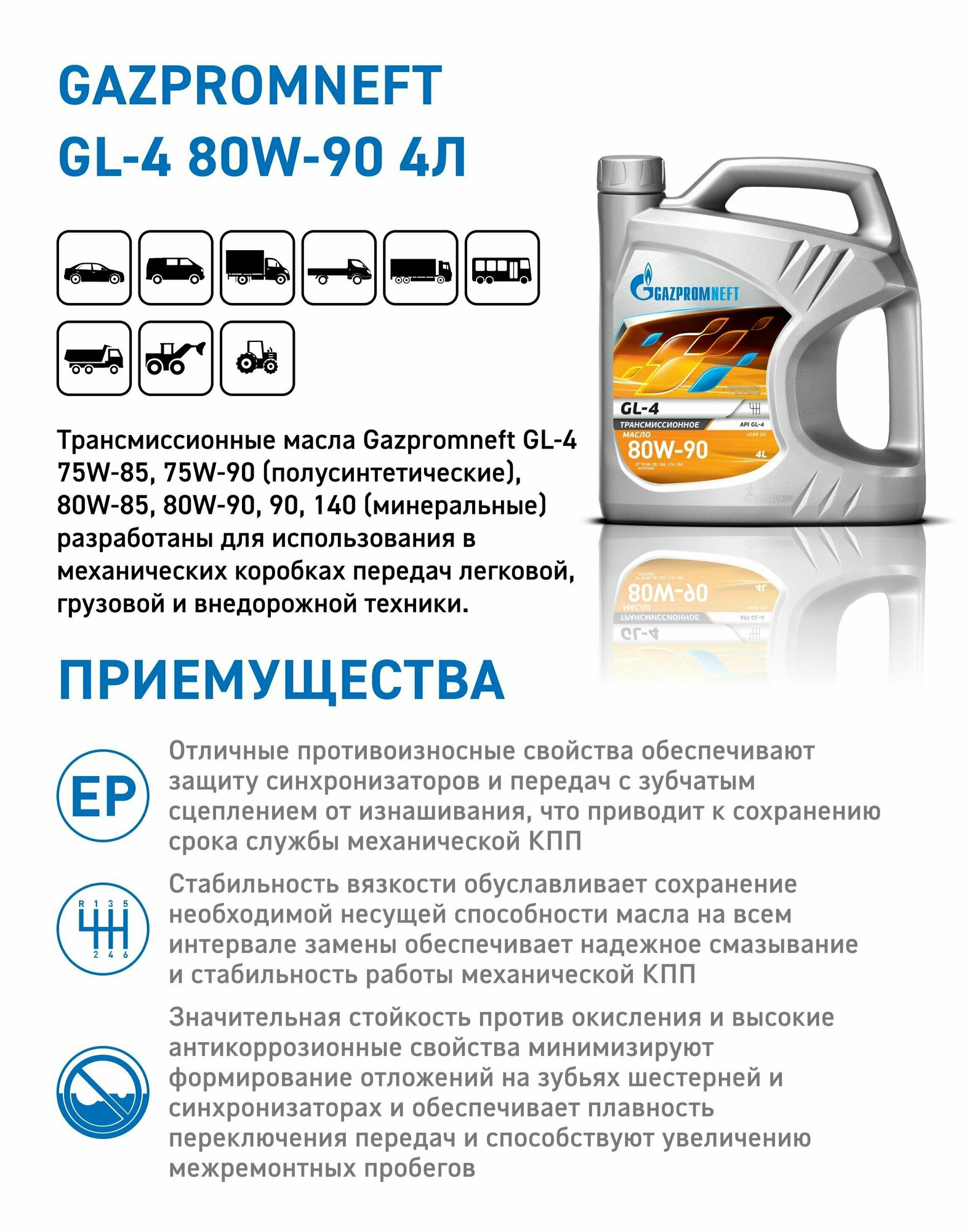 Масло трансмиссионное Газпромнефть GL-4, 80W-90, 4 л, 1 шт.