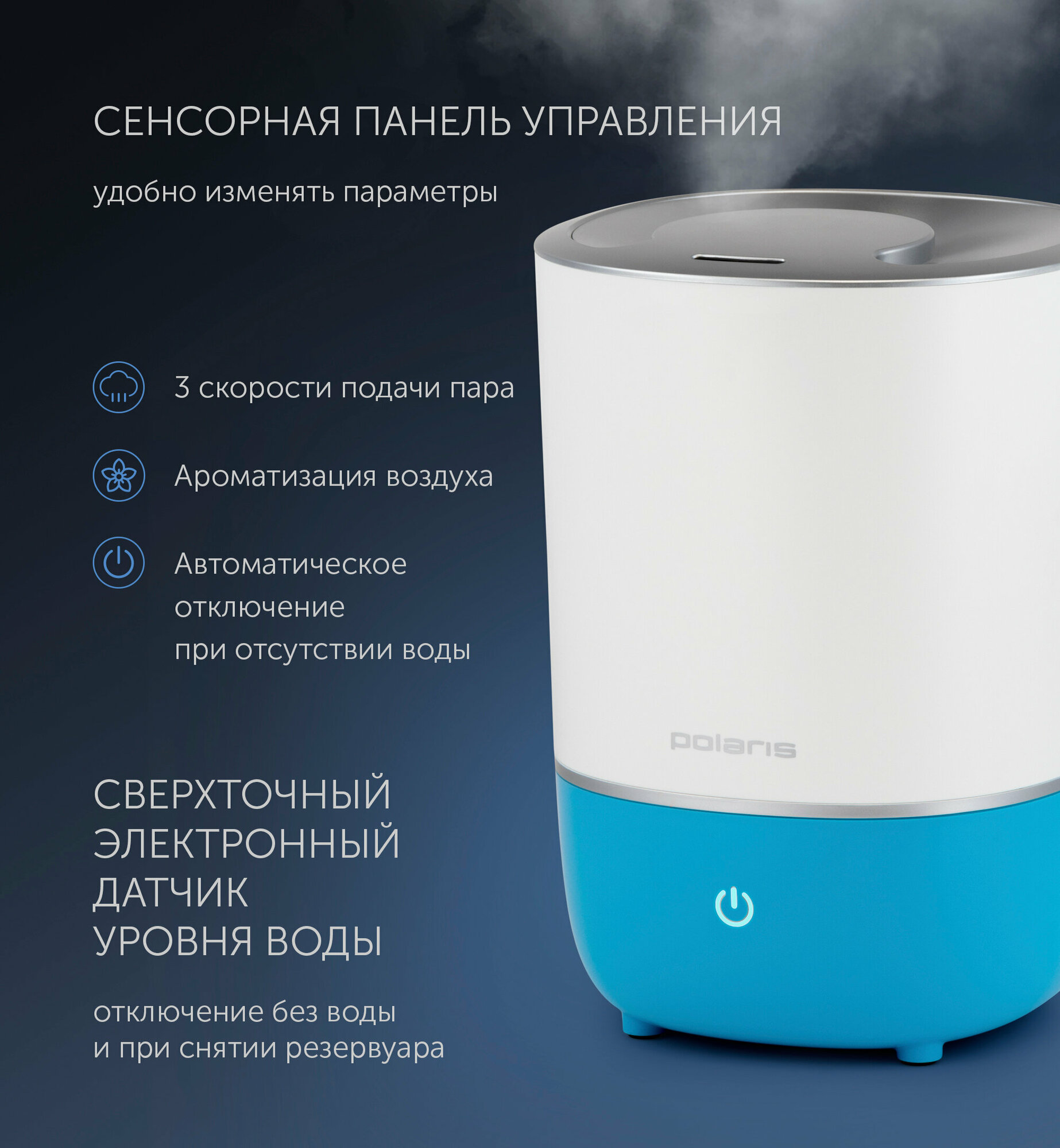 Увлажнитель воздуха Polaris PUH 7240TF, белый/голубой