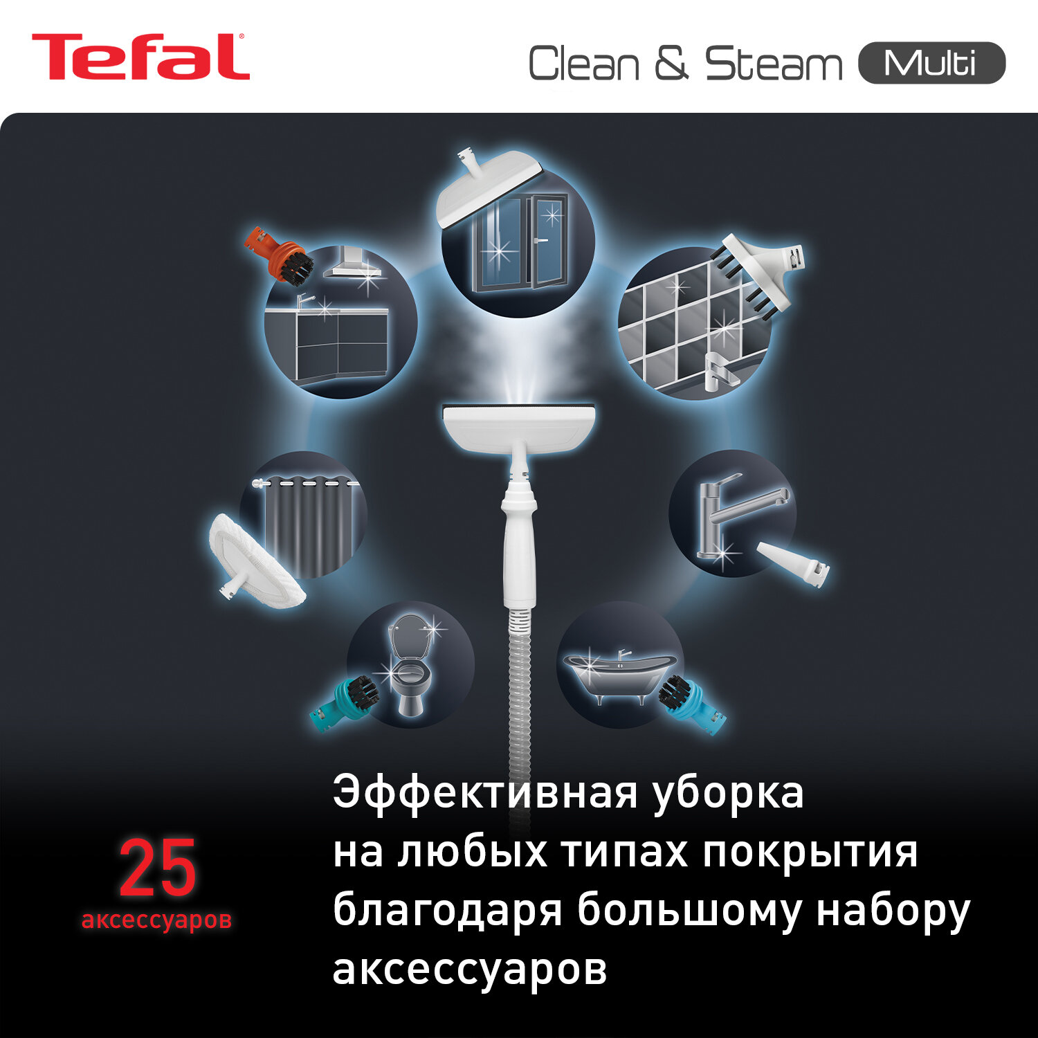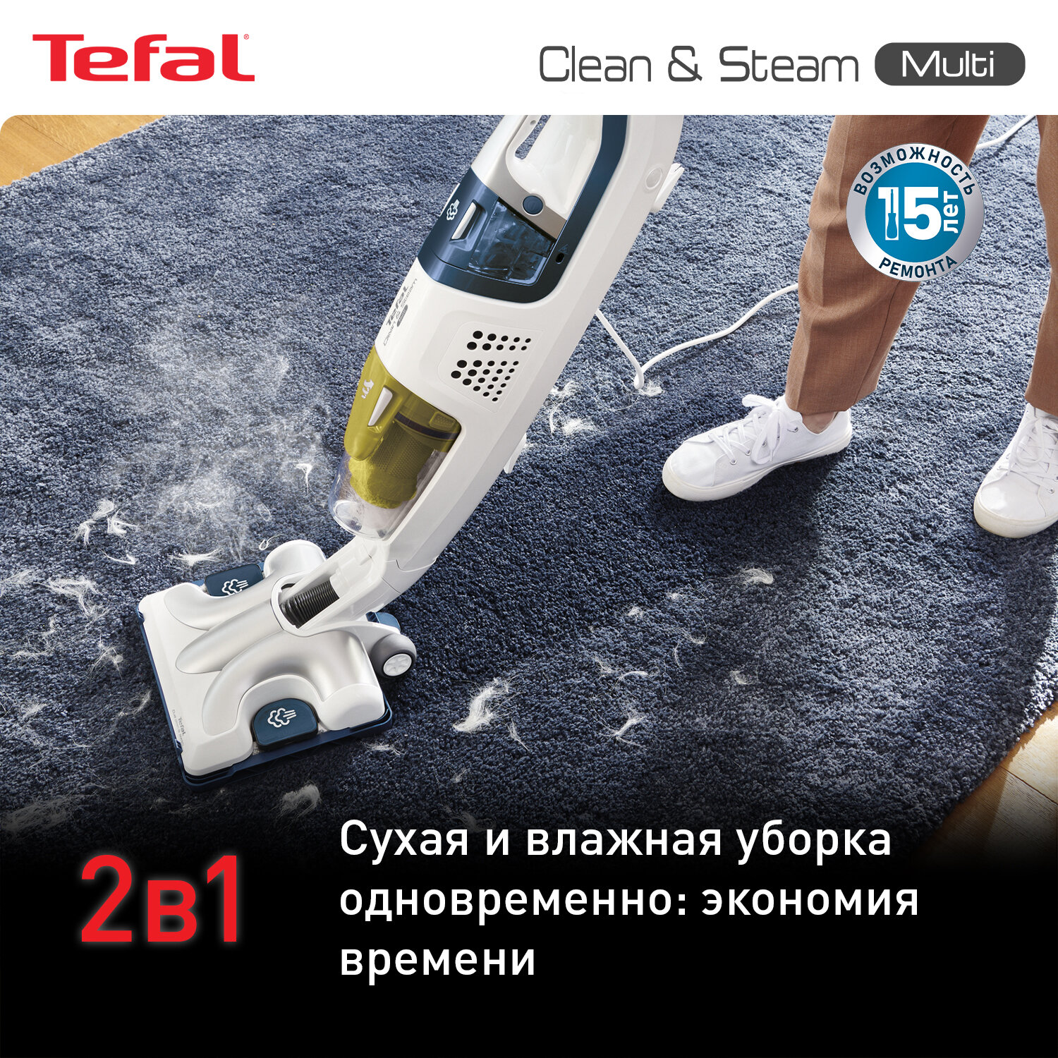 Лучшие цены. Паровой пылесос Tefal Clean & Steam Multi VP8561RH. Моет и пылесосит полы одновременно! Инновационное устройство экономит ваше время благодаря эксклюзивной насадке Dual Clean & Steam, которая одновременно пылесосит и моет полы, сокращая время уборки в 2 раза. Убивает до 99,9% микробов и бактерий. Clean & Steam Multi создает мощный пар, способный уничтожать до 99,9% микробов и бактерий, а значит вам больше не придется применять химические моющие средства, чтобы дезинфицировать поверхности и полы. Магазины в вашем городе.