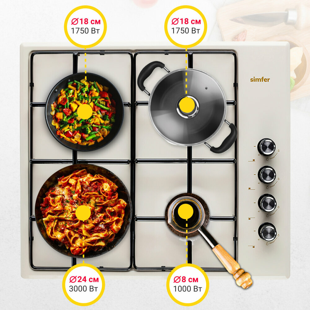 Лучшие цены. Газовая варочная панель Simfer H60Q40R400 - модель, которая благодаря своим компактным размерам органично впишется в интерьер вашей кухни и сделает ежедневный процесс приготовления еды комфортным. Рабочая поверхность выполнена из эмалированное стали – прочного и долговечного материала. На ней располагаются четыре конфорки - разные по диаметру и мощности пламени в них. А значит вы сможете выбрать оптимальную конфорку для приготовления разнообразных блюд. Магазины в вашем городе.
