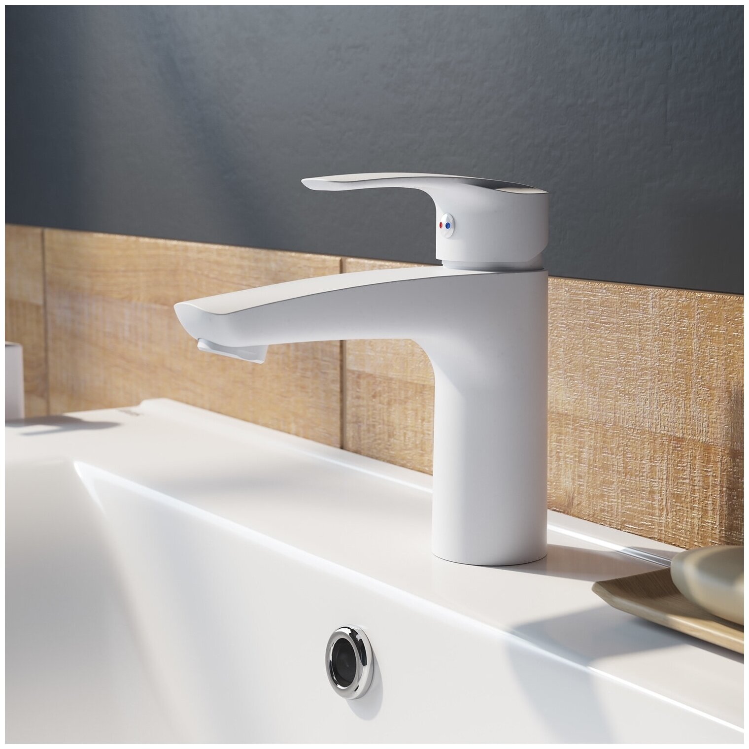 Лучшие цены. Смеситель для умывальника Ray имеет универсальный дизайн и благодаря трендовому матовому белому цвету станет ярким акцентом современного интерьера ванной. Аэратор в смесителе расположен под наклоном, направляя струю в удобную точку, что делает комфортным и мытье рук, и наполнение больших емкостей. • Надежный корпус из прочной первичной латуни марки ЛЦ40С ГОСТ 17711-93 с пониженным содержанием свинца — стойкий к коррозии, резким изменениям давления и перепадам температуры воды. Магазины в вашем городе.