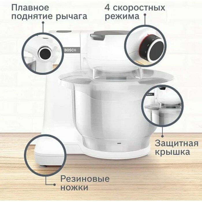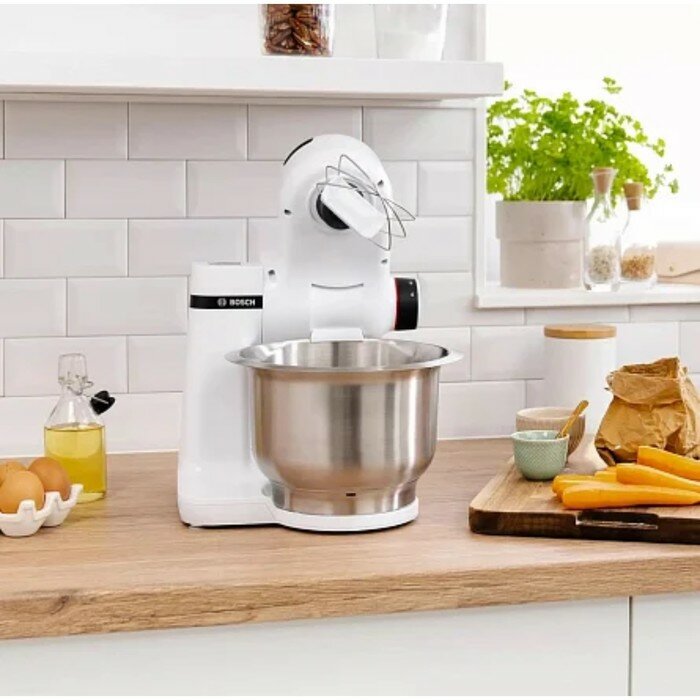 Кухонные комбайны Bosch Кухонная машина Bosch MUMS2EW40, 700 Вт, 3.8 л, 4 скорости, 3 насадки, бело-серая