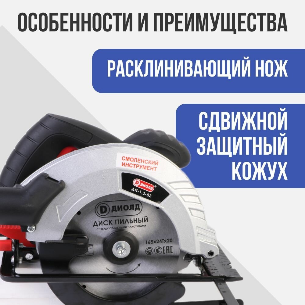 Пила дисковая циркулярная Диолд ДП-2,2-01, 2200 Вт, диск 200мм, 5000 об/мин, российский производитель