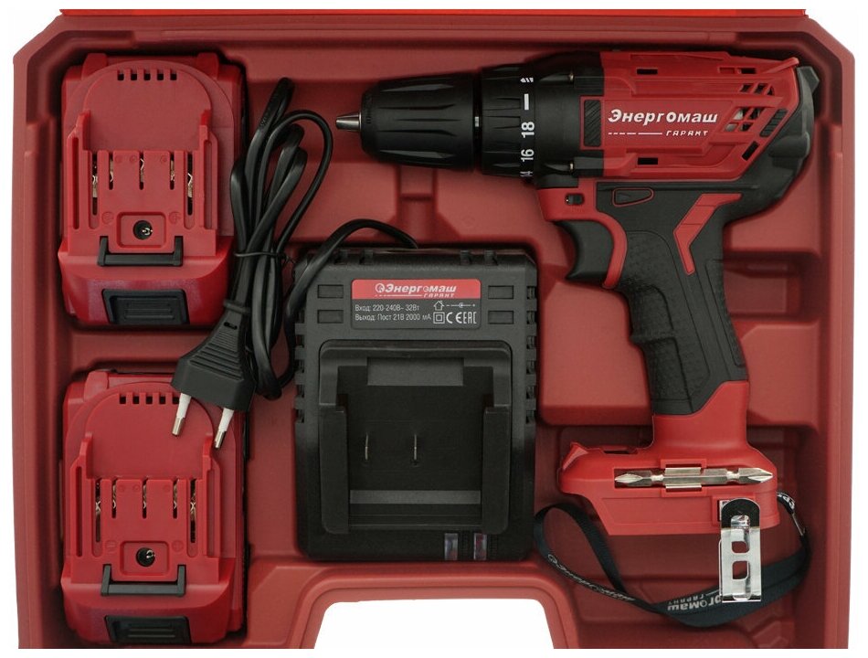 Аккумуляторный шуруповерт Энергомаш гарант ДШ1-20Л 1BatterySystem,дрель,20В,2 акк.2,0Ач,кейс+перчатк