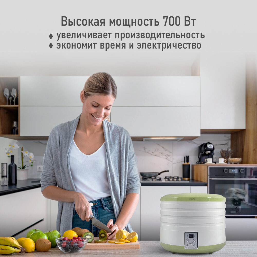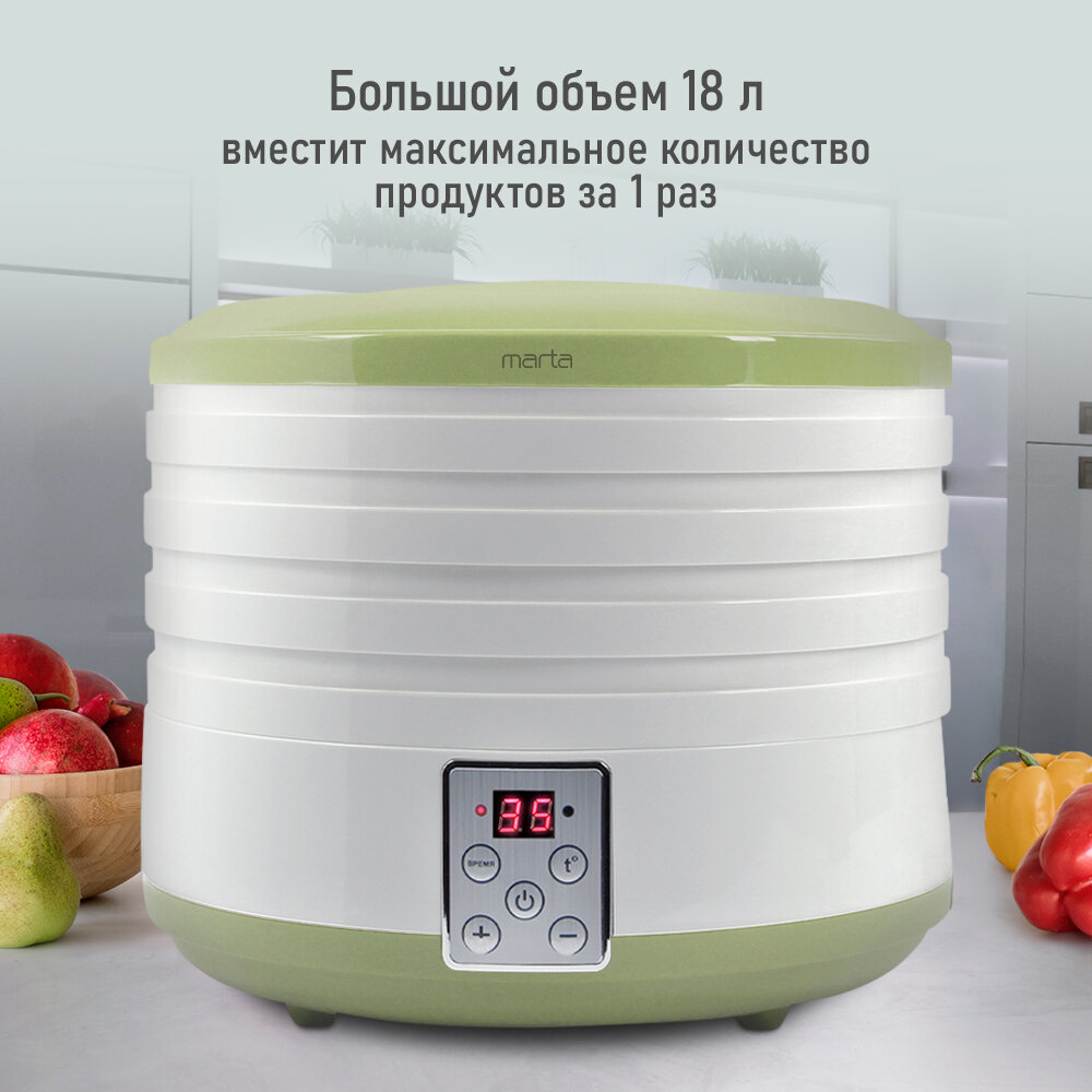 Сушилка фруктов MARTA MT-1880 4 поддона зеленый нефрит сушилка д/фруктов,овощей