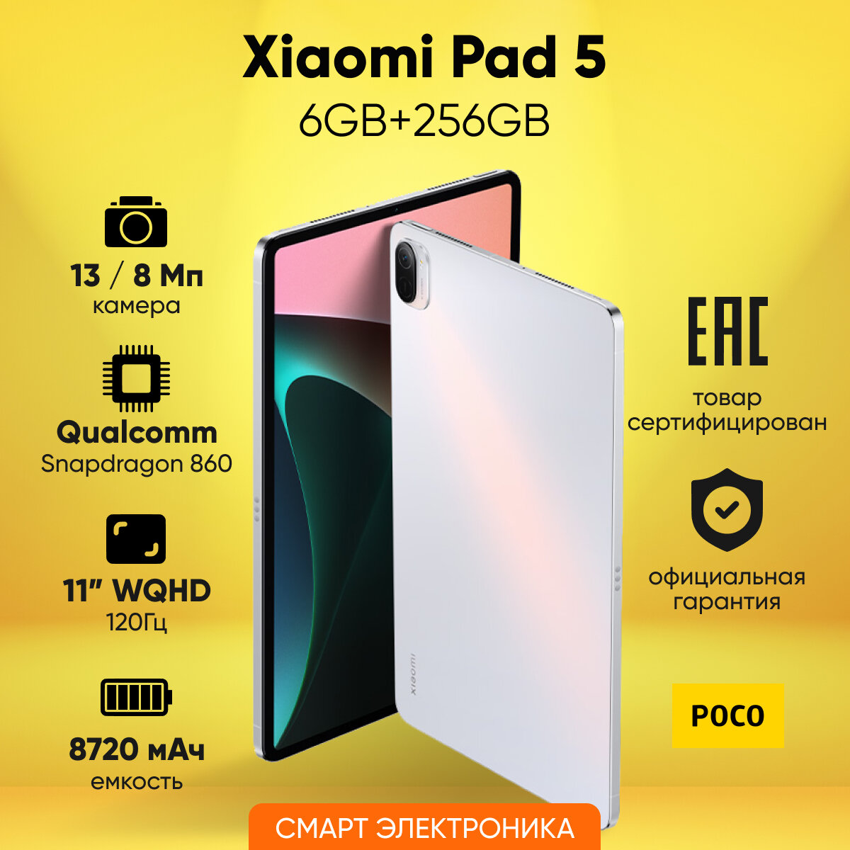 Планшет Xiaomi Pad 5 11" IPS 2560x1600, 128GB, 6GB, 8720 мАч, Wi-Fi, Android 11, жемчужный белый, Ростест EAC