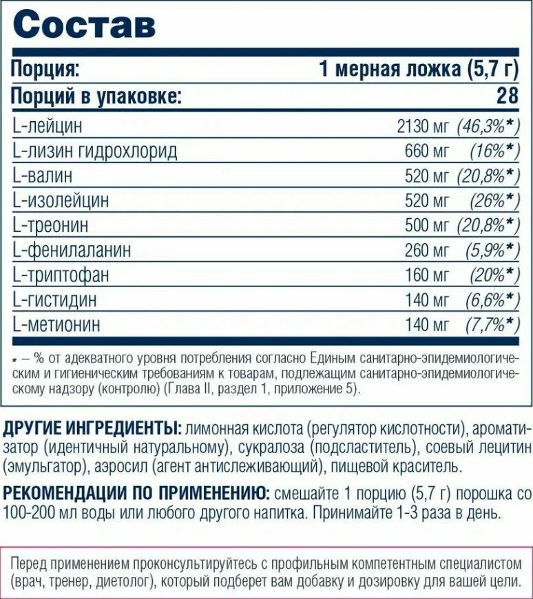 | BCAA в порции | 5 г |