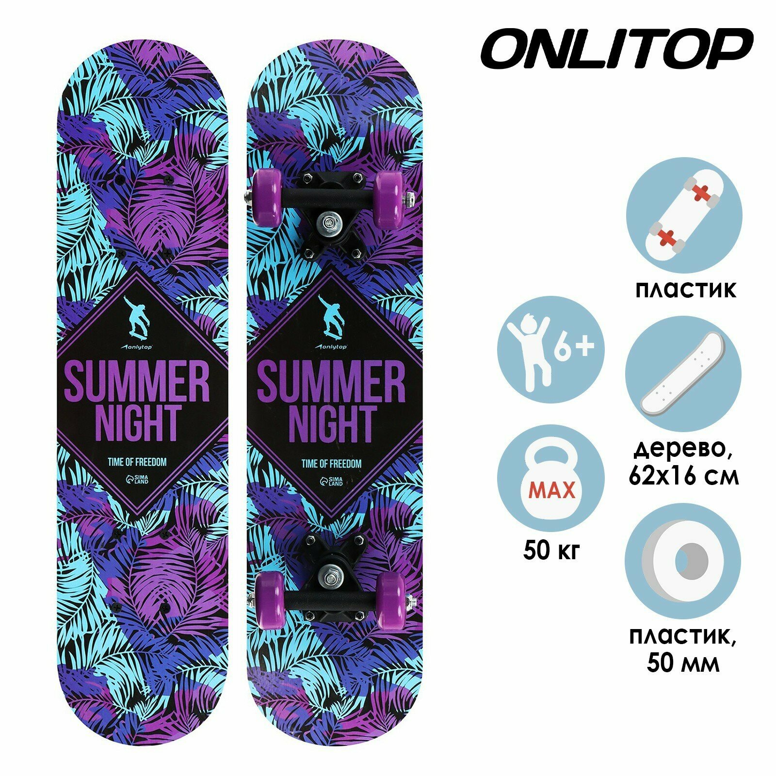 ONLITOP Скейтборд подростковый ONLITOP SUMMER NIGHT, 62х16 см, колёса PVC 50 мм, пластиковая рама