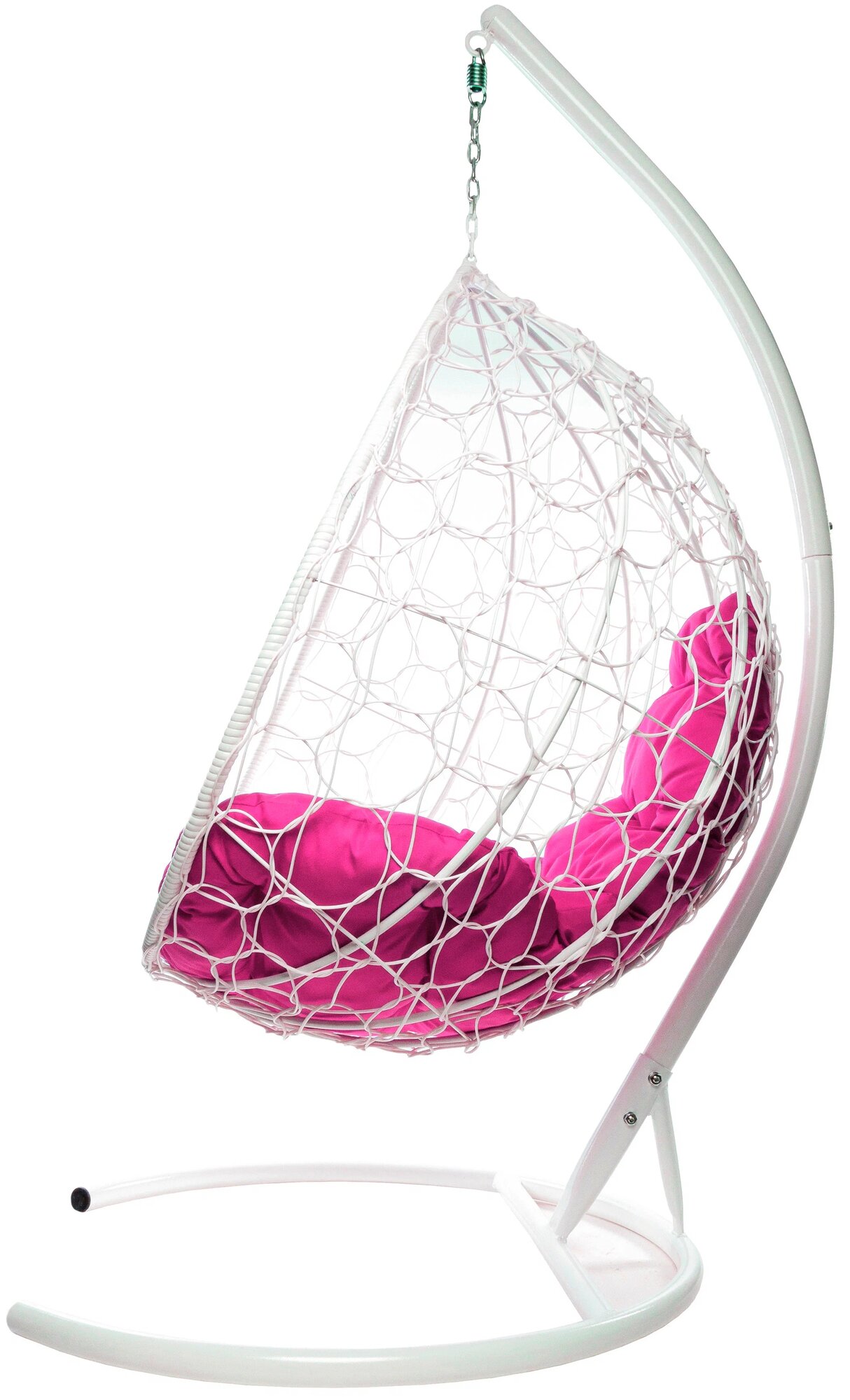 Садовая качель Подвесное кресло капля с ротангом белое, розовая подушка