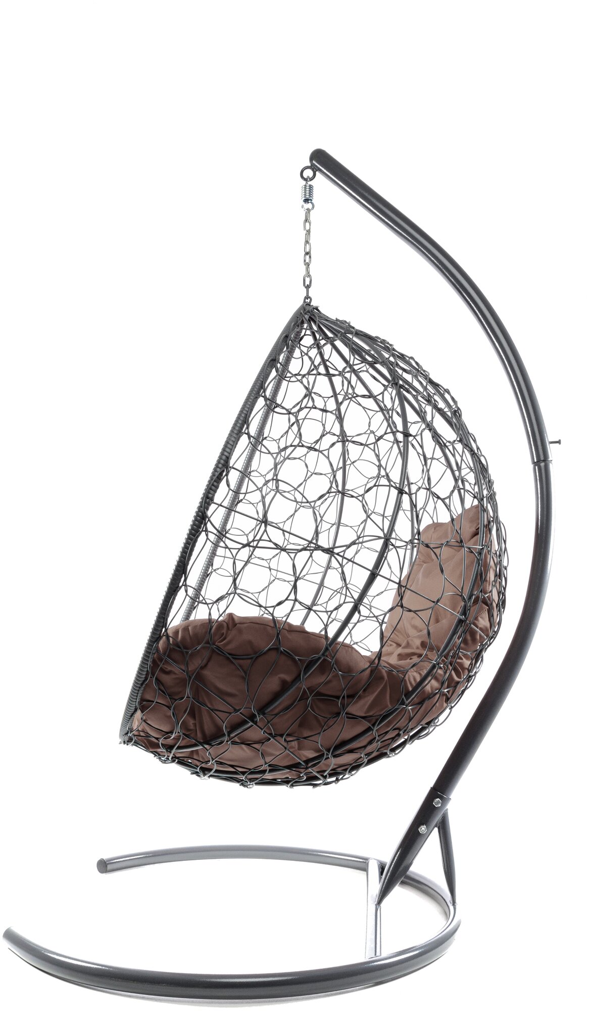 Садовая качель Подвесное кресло капля с ротангом серое, коричневая подушка
