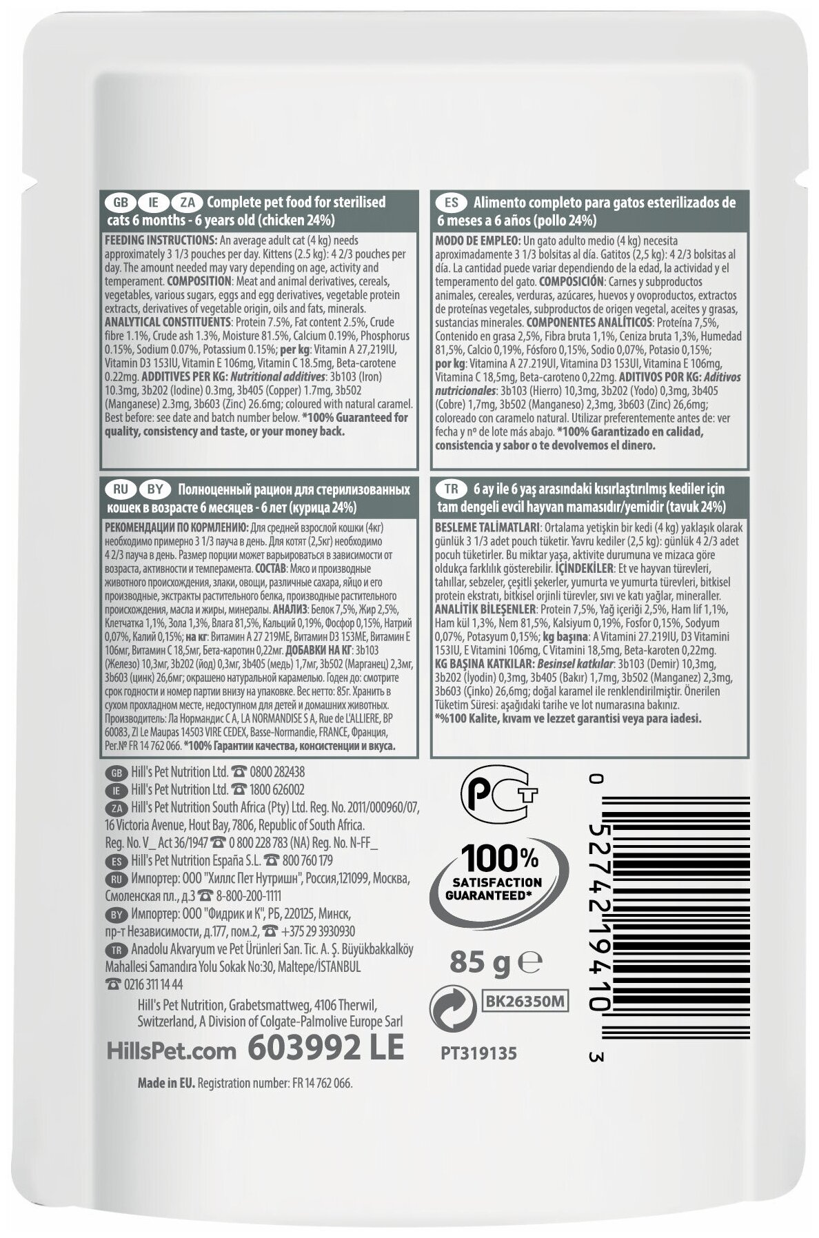 Хиллс 603992 пауч д/стерилизованных кошек до 6 лет Курица 85г