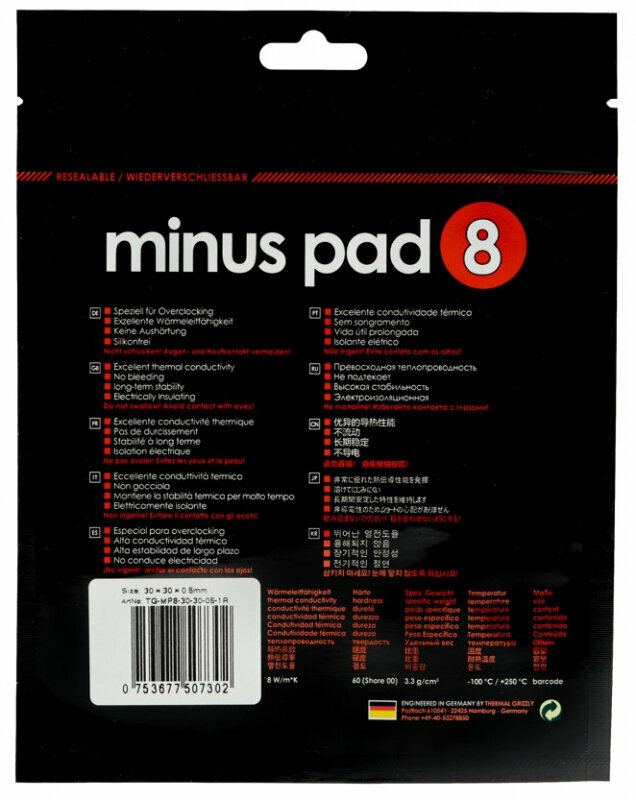 Термопрокладка Thermal Grizzly Minus Pad 8, 30x30x1.5 мм