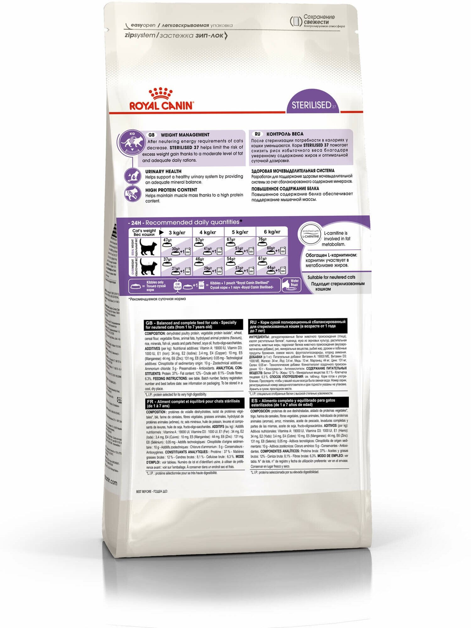 Лучшие цены. Сухой корм для стерилизованных взрослых кошек в возрасте от 1 года до 7 лет. Для стерилизованных/кастрированных, склонных к выпрашиванию корма. •Обеспечивает длительный эффект насыщения •Помогает поддерживать оптимальный вес •Поддерживает здоровье мочевыводящих путей •100% полнорационное и сбалансированное питание После стерилизации необходимо пересмотреть рацион кошки с учетом изменившихся потребностей в энергии. Магазины в вашем городе.