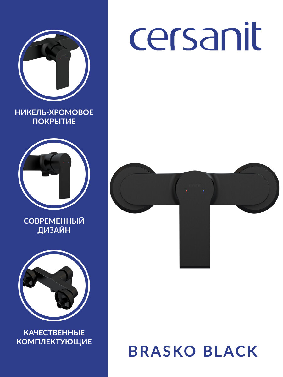 Смеситель Смеситель для душа Cersanit Brasko Black A63109, черный Cersanit 9095147 .