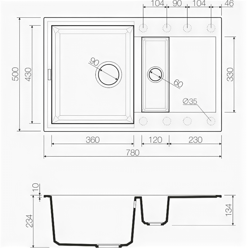 | Размеры доп. чаши (ДхШхГ) | 120x330x134 мм |