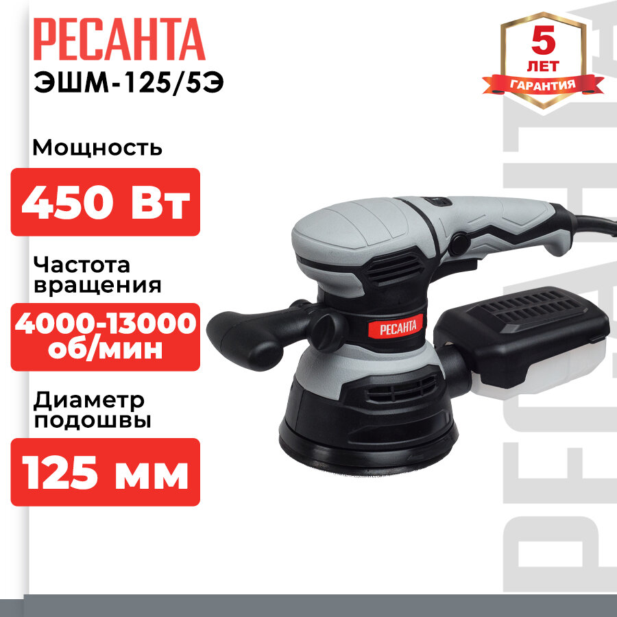 Эксцентриковая шлифовальная машина Ресанта ЭШМ-125/5Э, 450 Вт, 4000-13000 об/мин