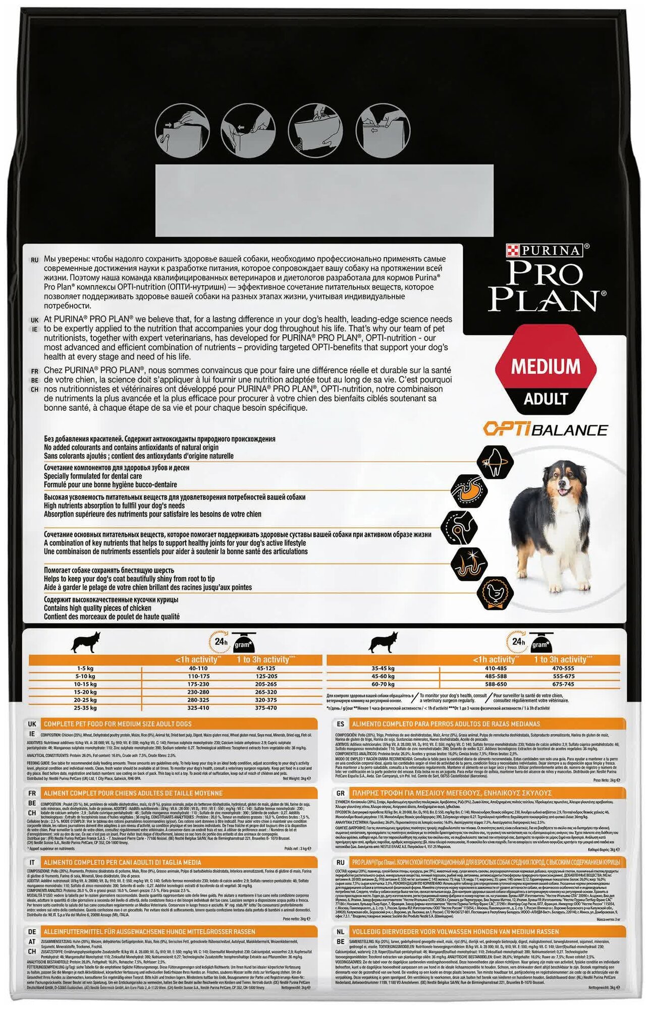 Сухой корм Pro Plan для взрослых собак средних пород с комплексом OPTIBALANCE с высоким содержанием курицы, Пакет, 14кг