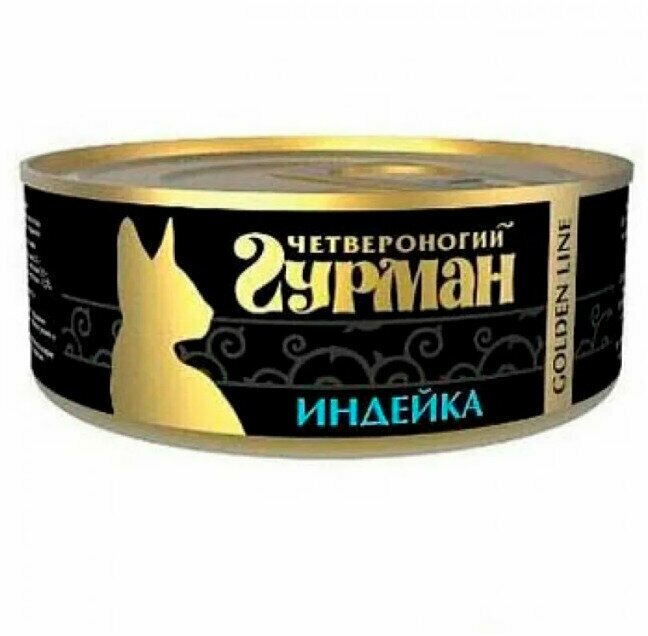Лучшие цены. Консервы quot;Четвероногий Гурман quot; серии Golden Line производятся исключительно из самых качественных сортов мяса и птицы категории Human Grade. Консервы содержат 0,5 натуральной желирующей добавки для профилактики образования жидкости в банке. Консервы готовятся из филе индейки без кожи. Индейка - один из самых нежирных и низкокалорийных, но очень питательных видов мяса. В ней почти не содержится холестерина. Магазины в вашем городе.