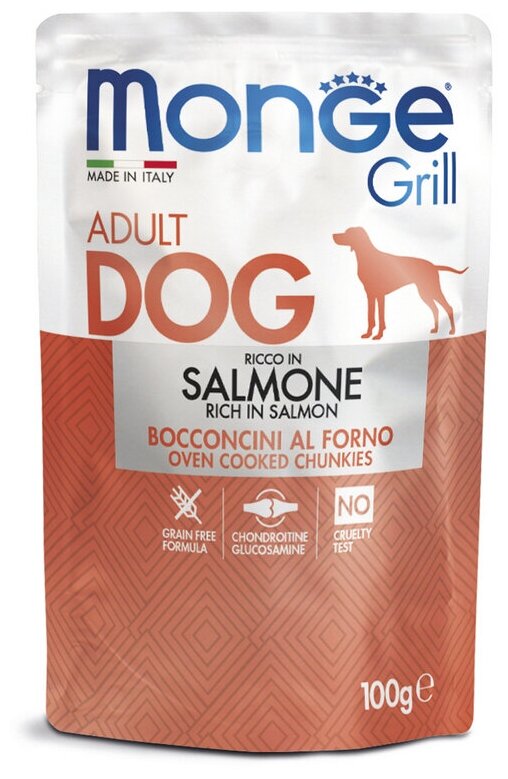 Влажный корм для собак Monge Grill POLLO e TACCHINO, беззерновой, с курицей, с индейкой, 12 шт. х 100 г