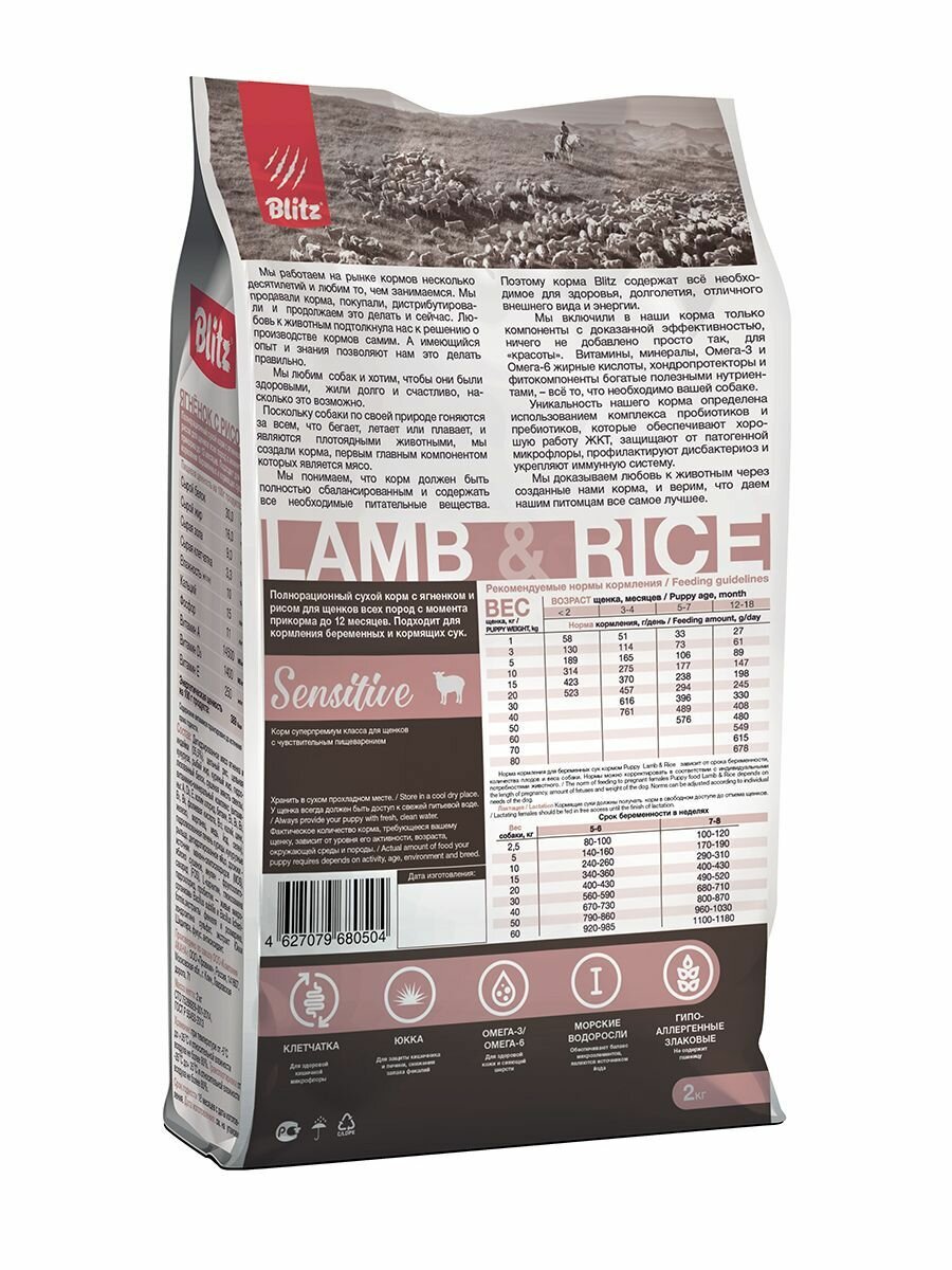 BLITZ PUPPY ALL BREEDS SENSITIVE LAMB & RICE для щенков всех пород с ягненком и рисом (2 кг)