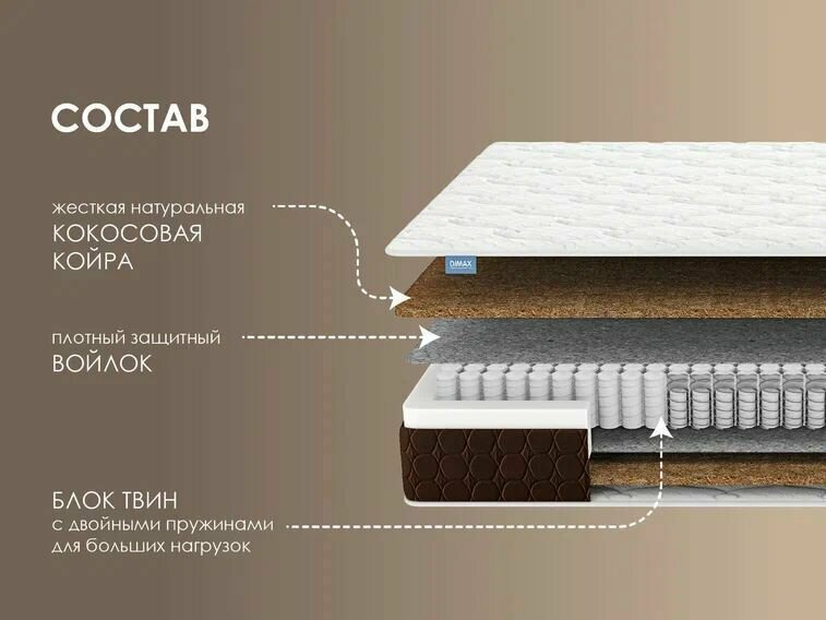 Матрас Dimax Твин Хард, 120x200 см, пружинный 28 742 ₽ Подробнее