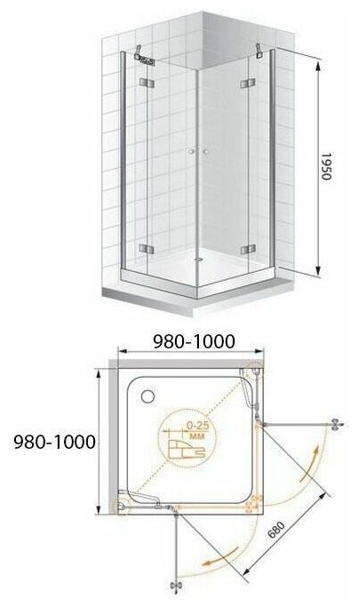 | Способ открытия | распашные двери / ширина входа — 680 мм / |