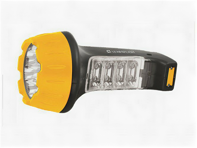 Фонарик Ultraflash фонарь ручной LED3818 (акк. 4V 0.7Ah) 7св/д+8св/д (25lm),желт+черн/пласт,2 реж,вилка 220V e10973