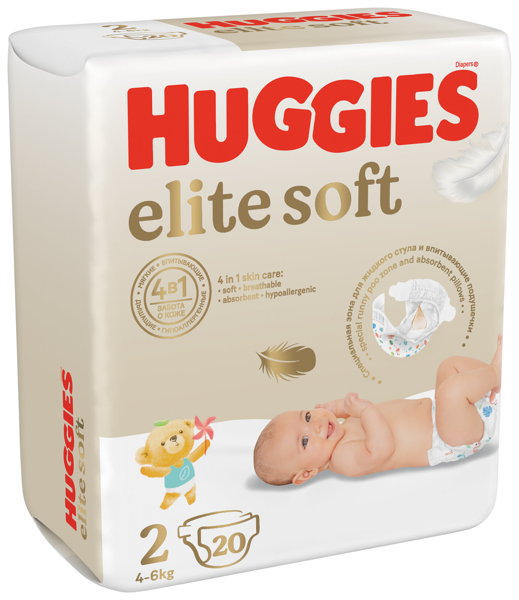 Подгузники (памперсы) Подгузники Huggies Элит Софт 2, 4-6 кг, 20 шт
