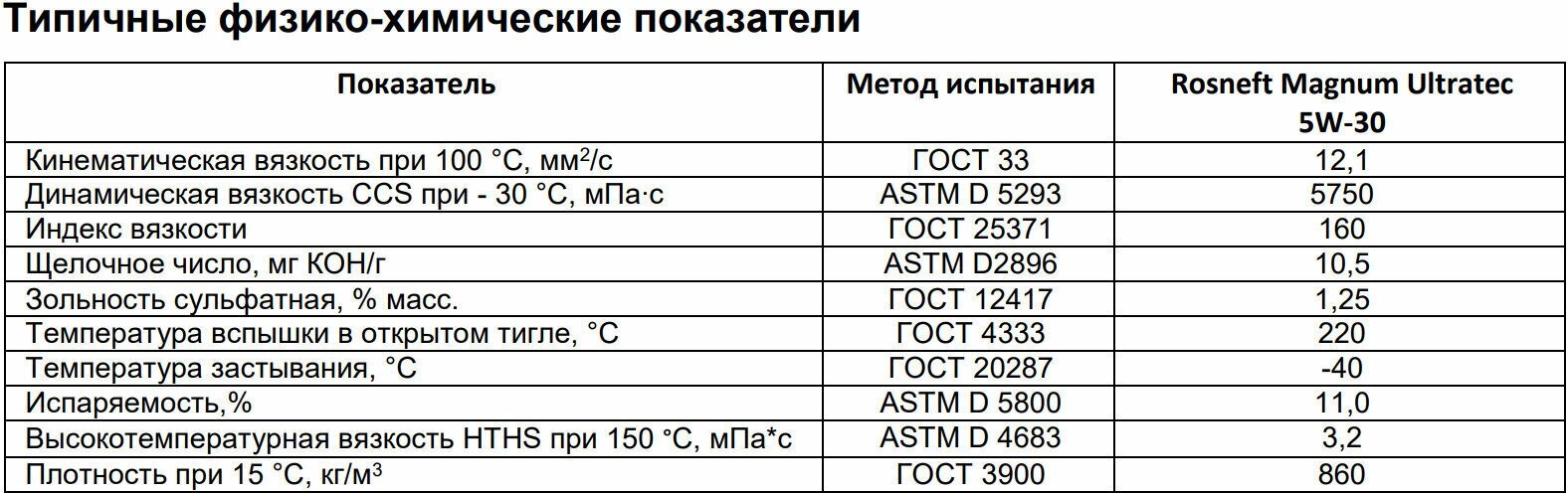 масло Rosneft Magnum Ultratec 5w30 (SL/CF) 4л син. (максимальная мощность двигателя)