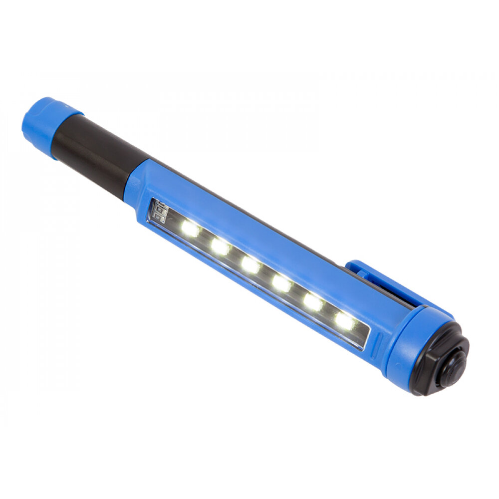 Лучшие цены. Фонарик изготовлен в виде ручки, крепление – клипса + магнит. Шесть светодиодных элемента вмонтированы вдоль корпуса фонарика. Клипса-магнит может поворачиваться относительно корпуса фонарика на 360 градусов, таким образом, закрепив фонарик у себя на одежде, или установив при помощи магнита на металлической поверхности, вы можете направить световой поток фонарика в нужную сторону. Магазины в вашем городе.
