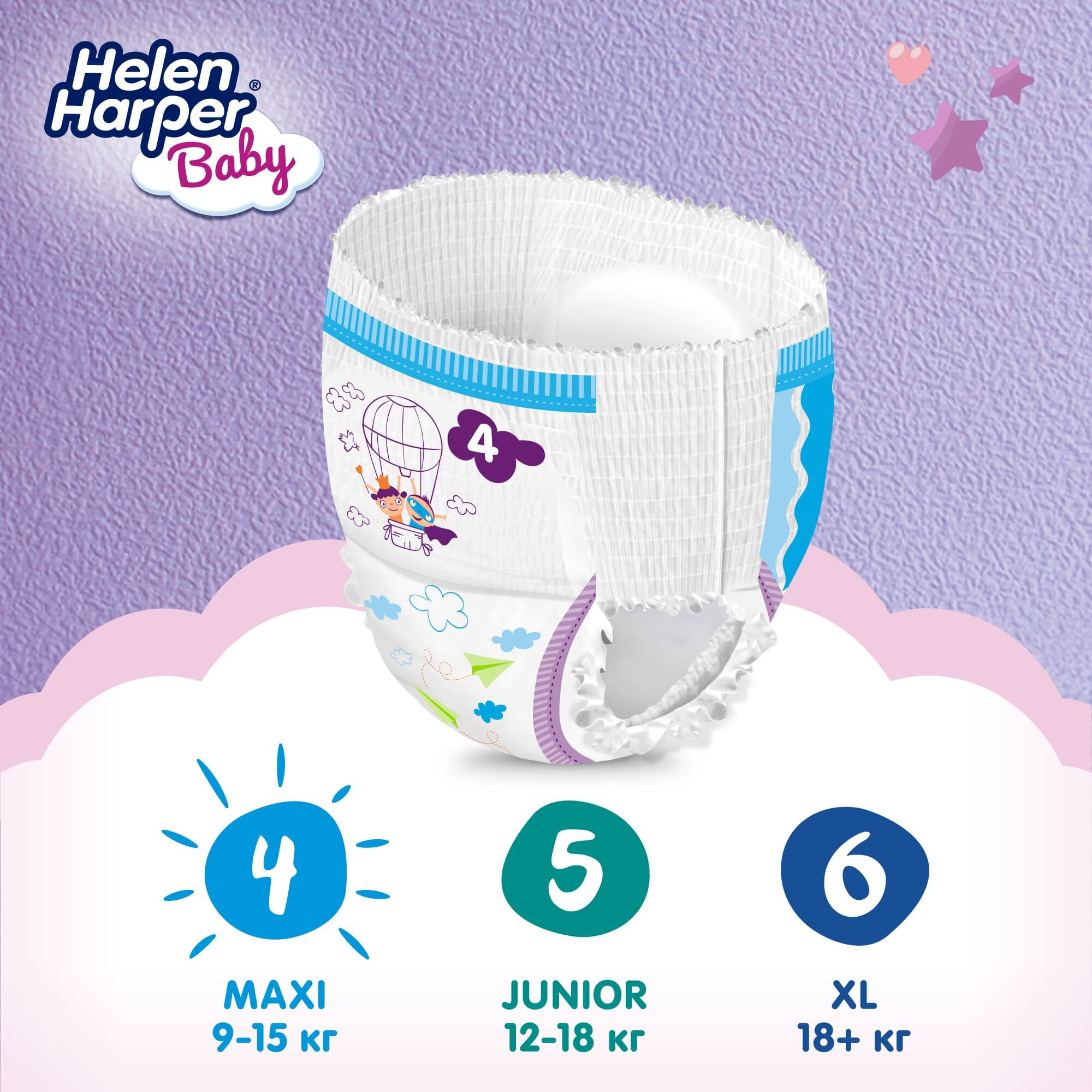 Подгузники трусики детские, памперсы Helen Harper Baby, размер 4 Maxi (9-15 кг), 22 шт