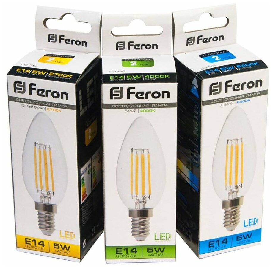 Лампочки Лампочка светодиодная свеча E14/C35 5Вт 530Лм белый теплый 2700К, 25572