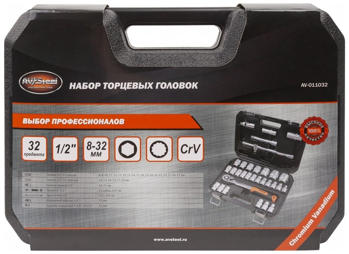 Набор инструмента "AV Steel" 32 предм. 1/2" профессион., AV-011032