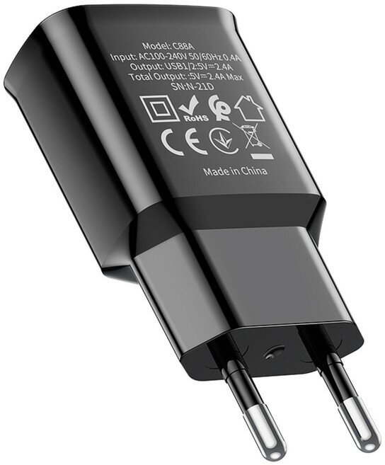 Сетевое зарядное устройство Hoco C88A, 2 USB - 2.4 А, черный