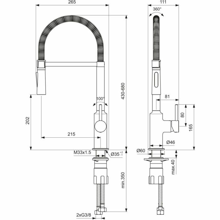 | Подвод воды | шланги / 350 мм / G 3/8" |
