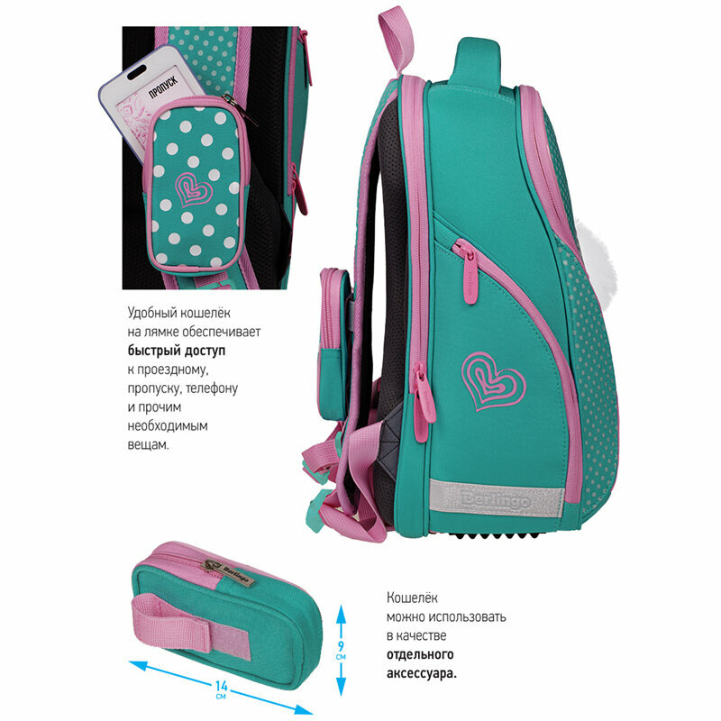 Ранец ортопедический школьный Berlingo для девочки, Nova, "Curious cat", 37х28х18 см, 2 отдела, 2 кармана (RU06205)