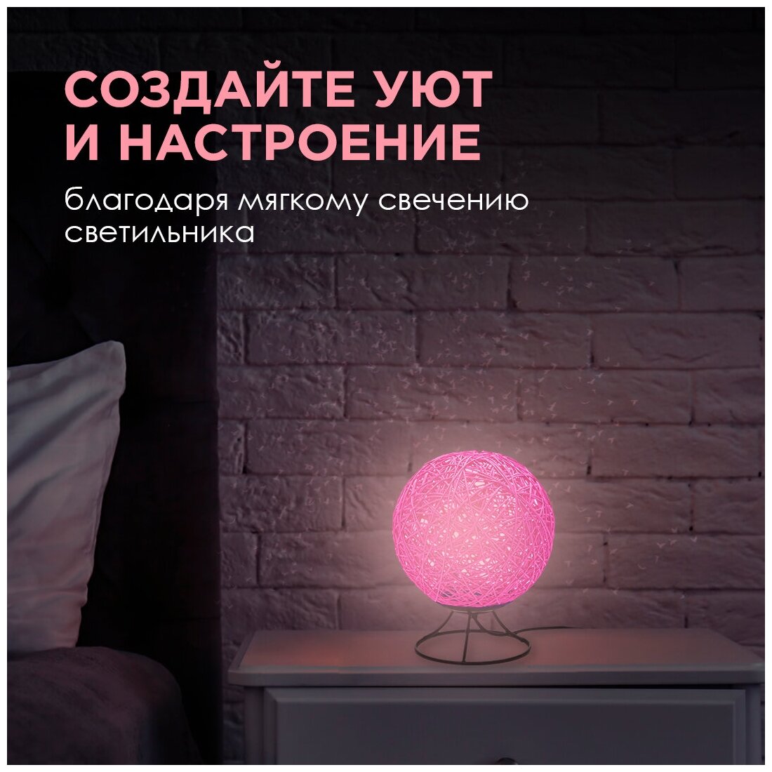 Светодиодный ночник из ротанга с теплым свечением для интерьера / Розовый