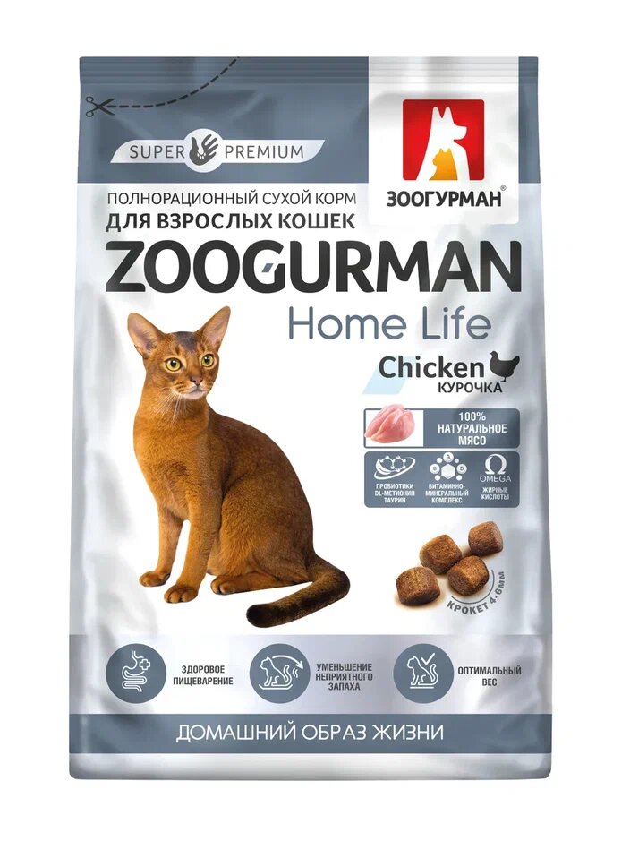 Корм Зоогурман Home Life Chicken для кошек, с курицей, 10 кг
